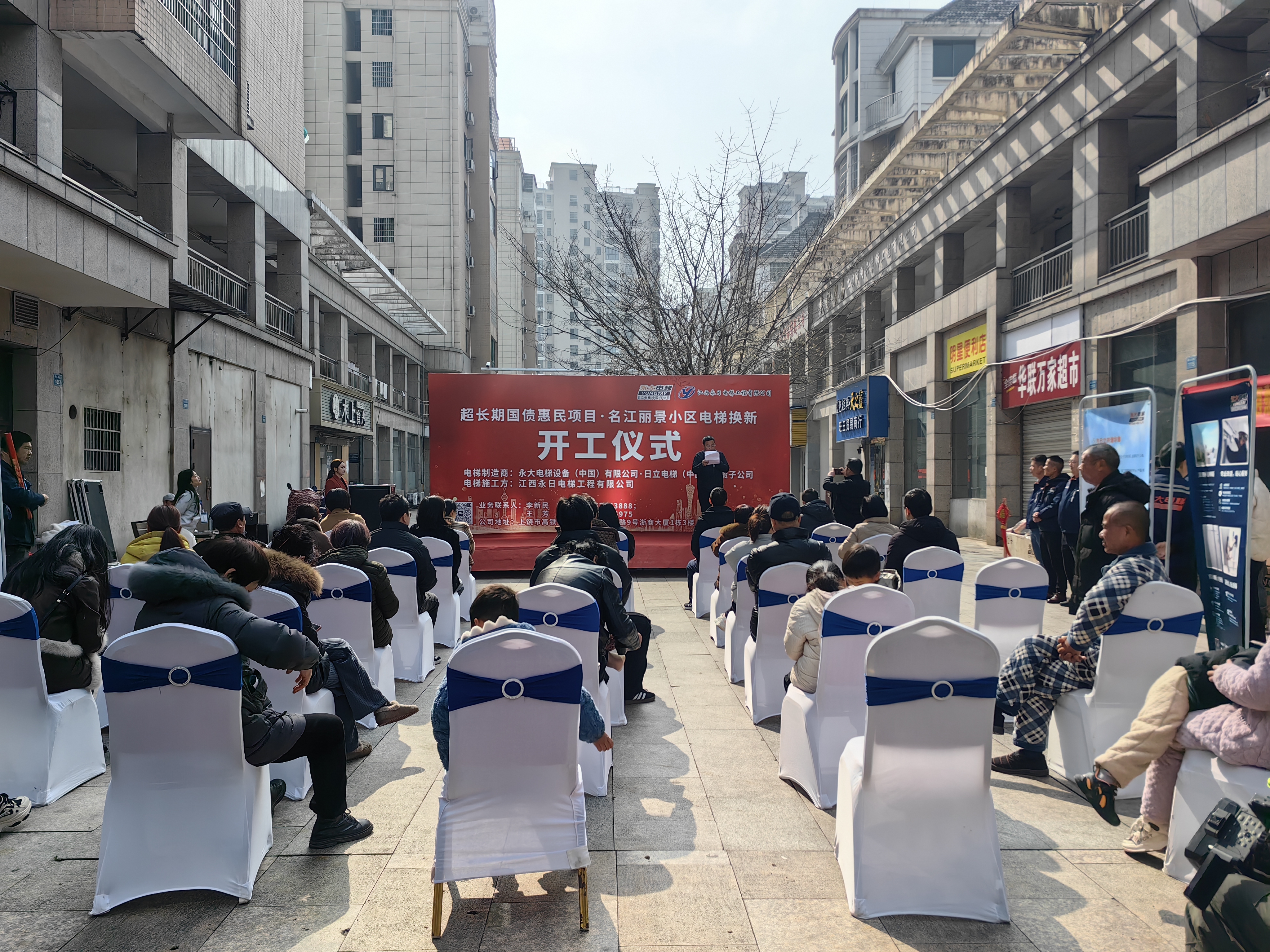 2月16日,江西省上饒市廣信區名江麗景小區成功舉辦國債補助電梯煥新開工典禮。